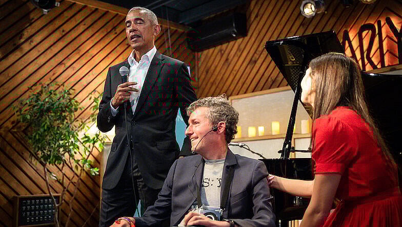Main image: Brian Wallach and Sandra Abrevaya with former President Barack Obama, courtesy of The Obama Foundation.